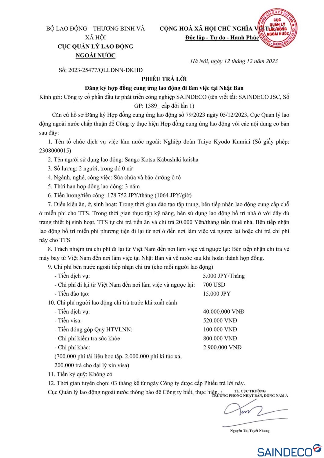 Tuyển dụng việc làm Nhật Bản SAINDECO