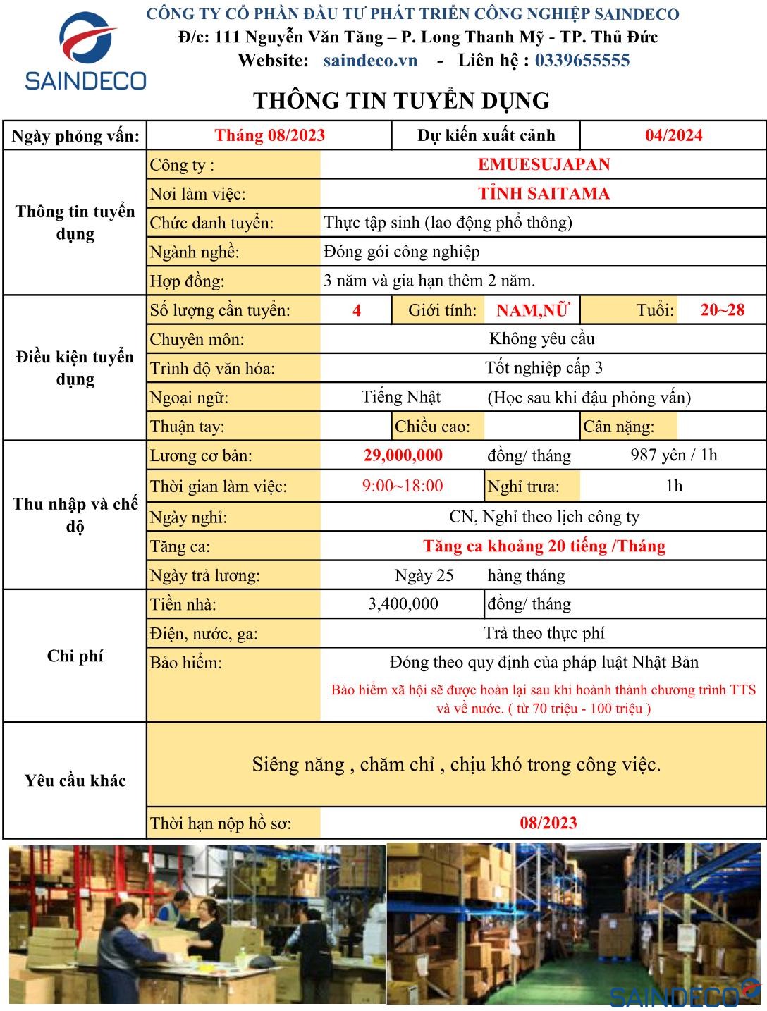 Nếu bạn quan tâm đến đơn hàng đóng gói công nghiệp tại Nhật Bản, hãy liên hệ với SAINDECO để được tư vấn chi tiết và hỗ trợ đăng ký sớm nhất!