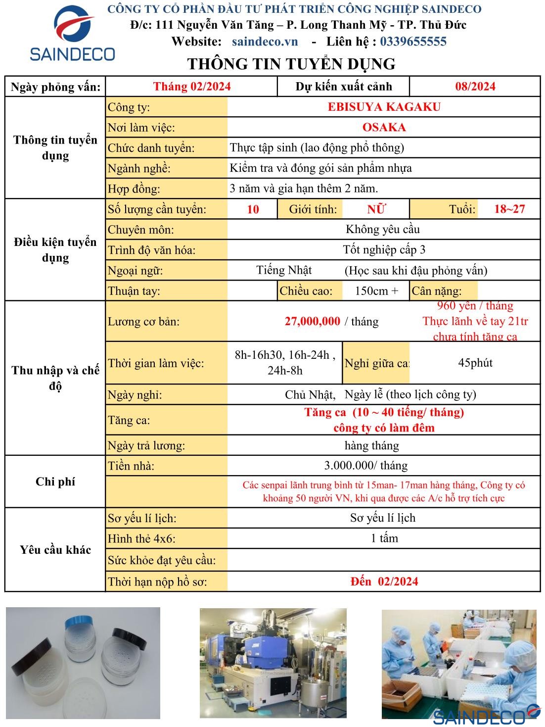 Ngày phỏng vấn: Tháng 02/2024 Dự kiến xuất cảnh 08/2024