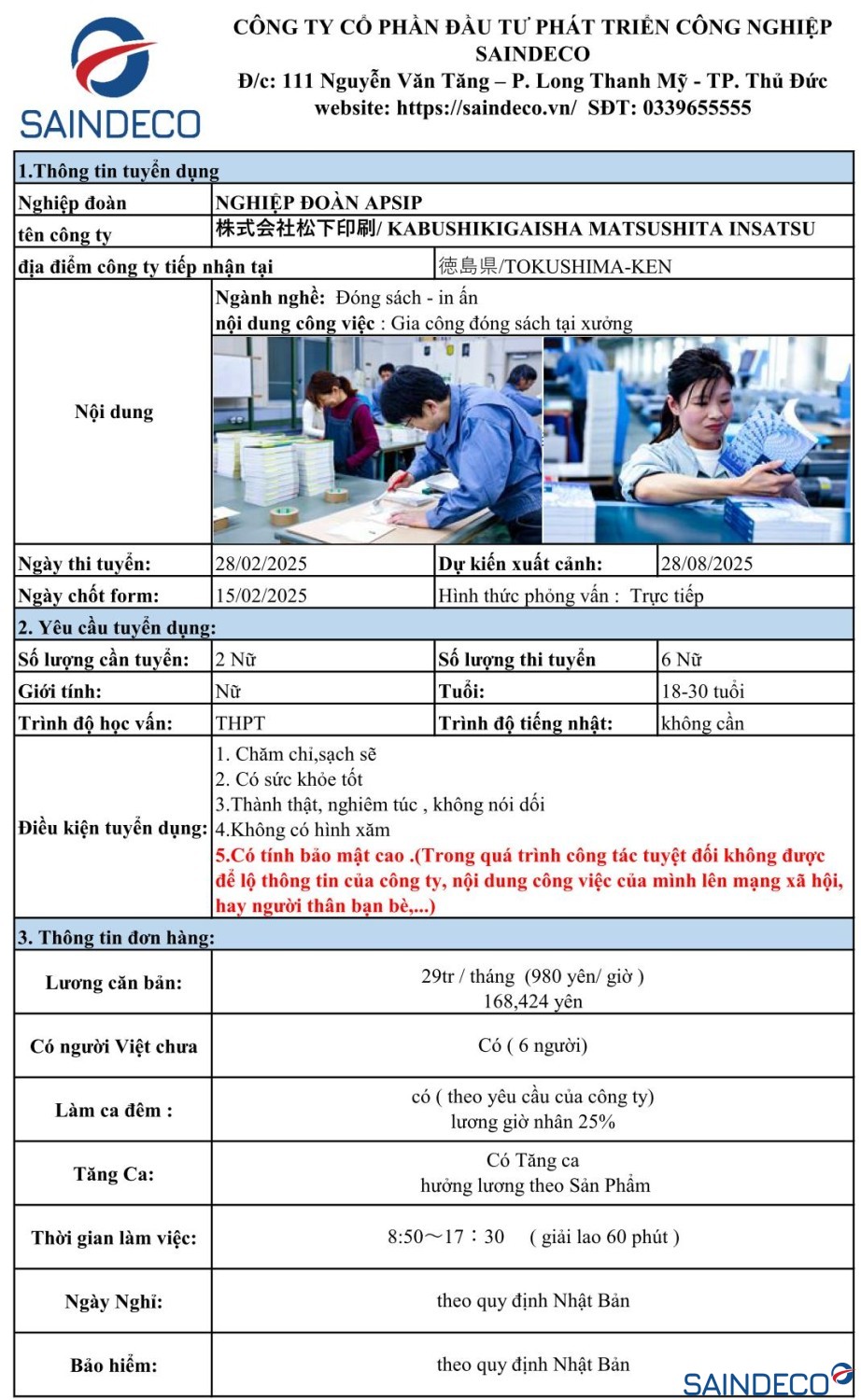 Ngày thi tuyển: 28/02/2025 Dự kiến xuất cảnh: 28/08/2025