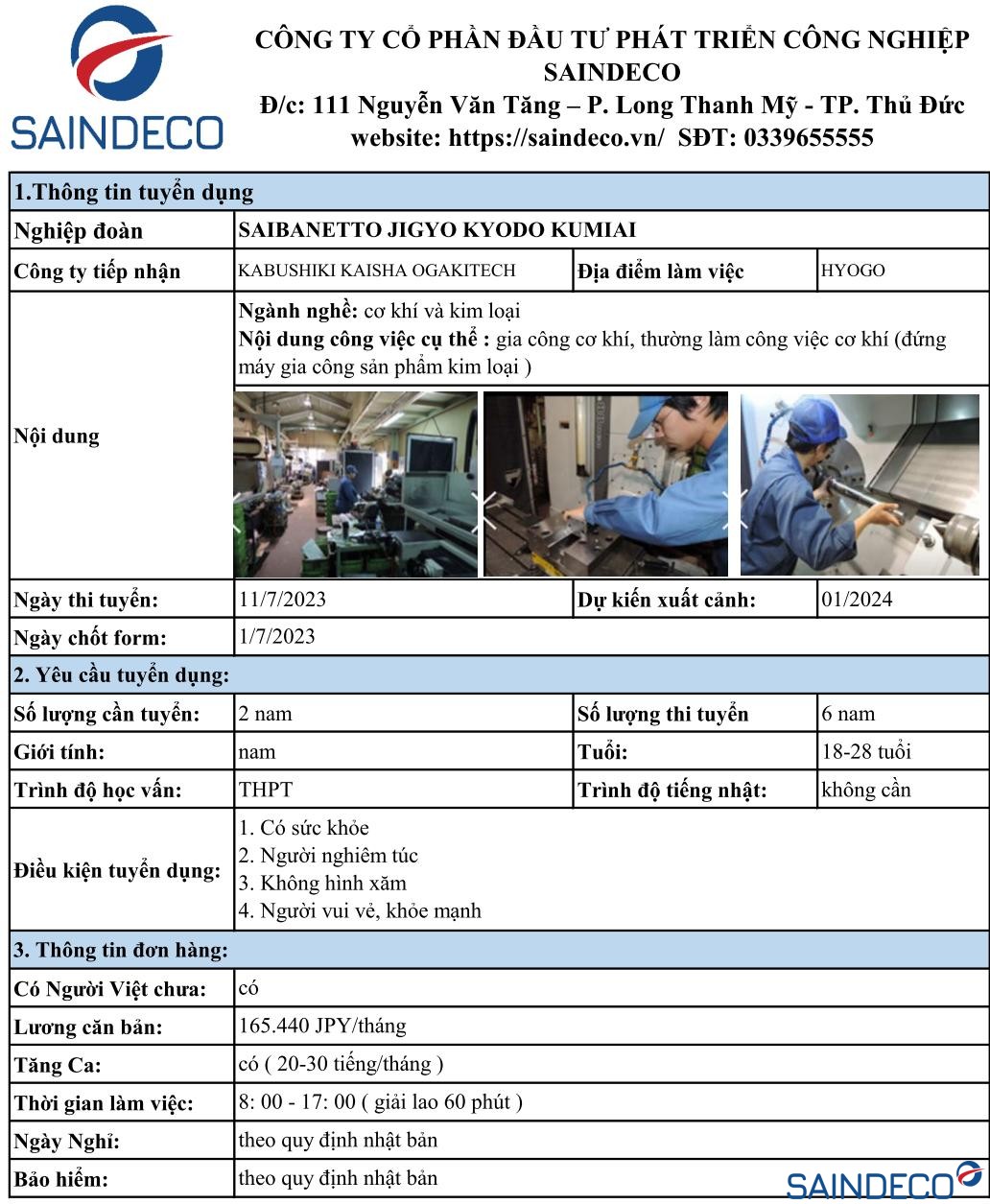 Tuyển dụng việc làm Nhật Bản SAINDECO