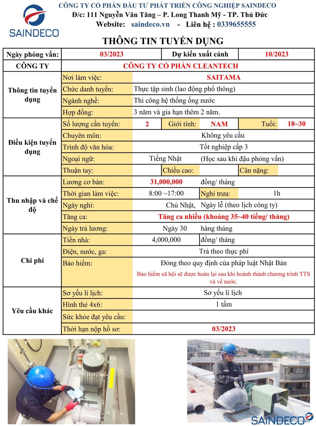 Tuyển dụng việc làm Nhật Bản SAINDECO
