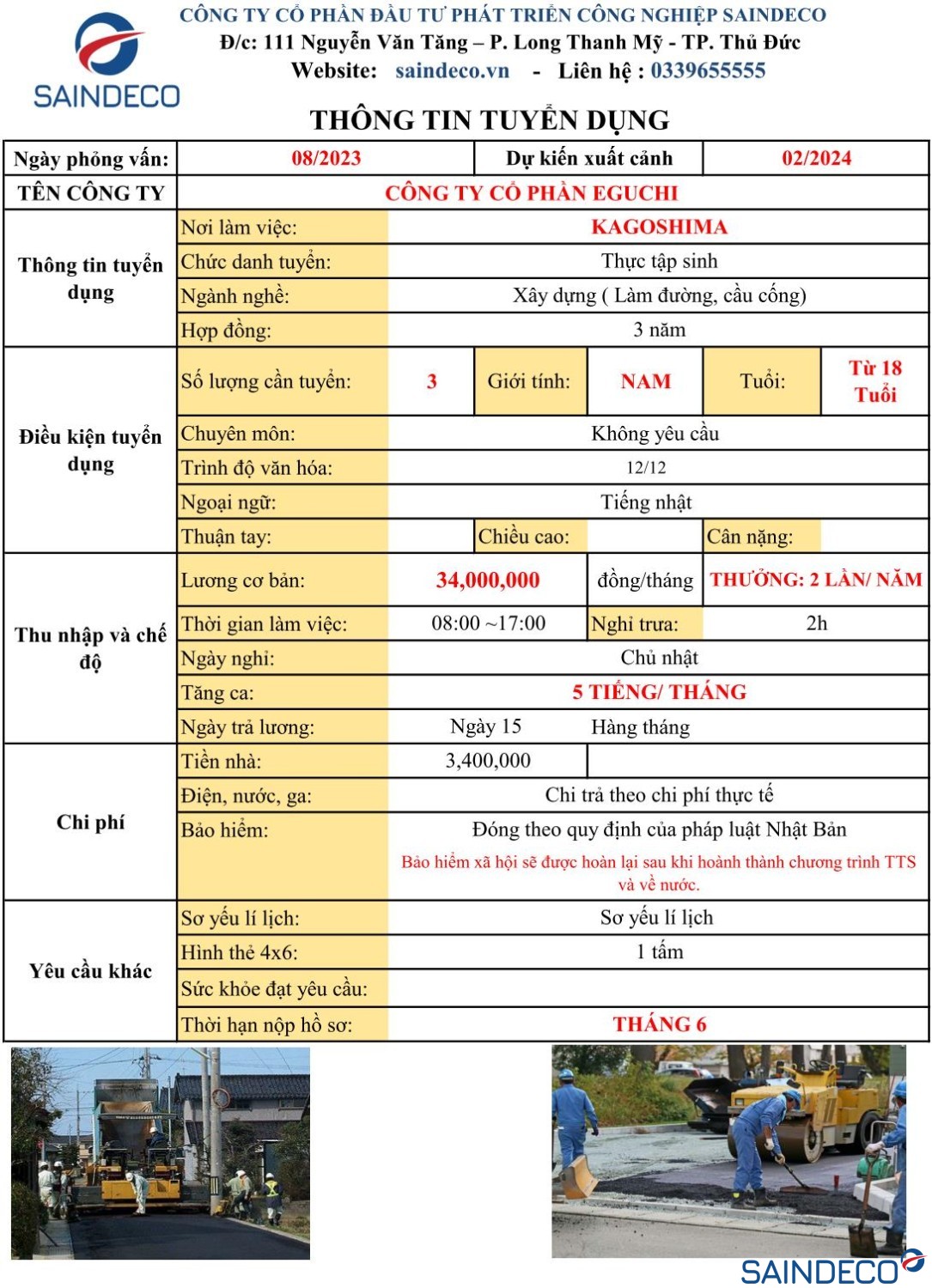 Tuyển dụng việc làm Nhật Bản SAINDECO