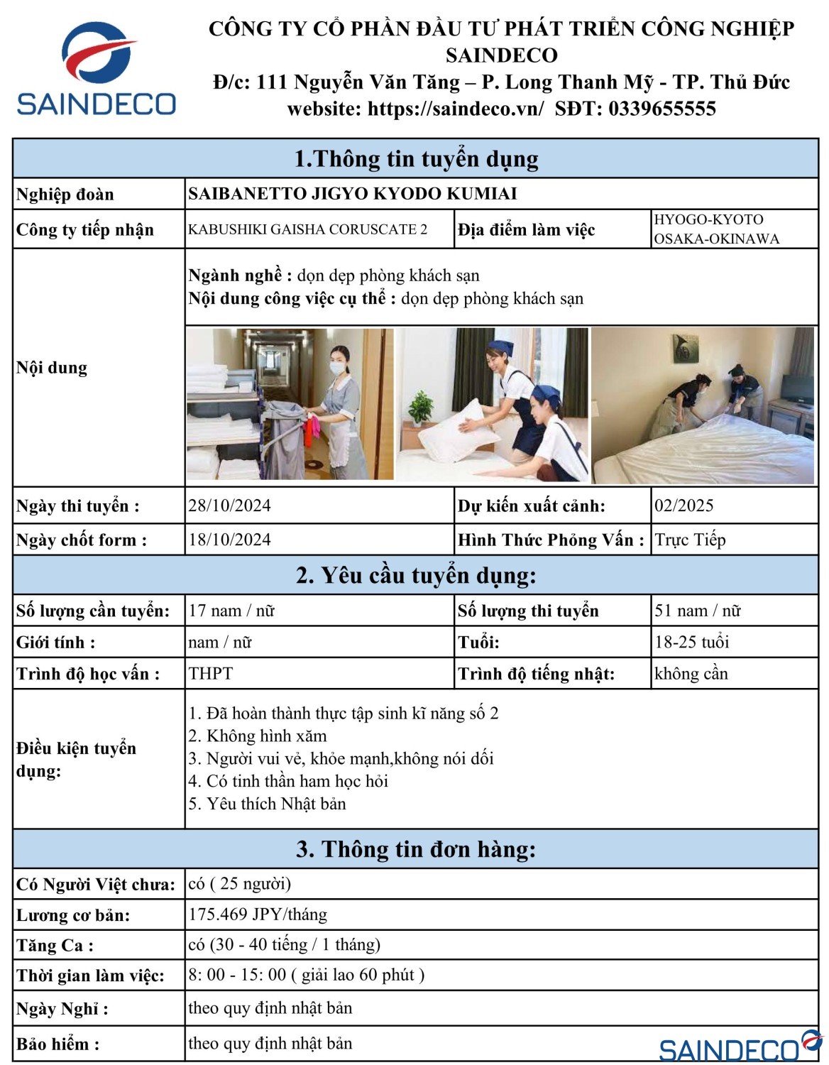 Nội dung công việc cụ thể : dọn dẹp phòng khách sạn