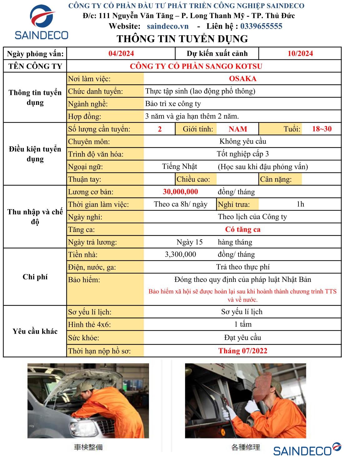 Ngành nghề : Bảo trì xe công ty