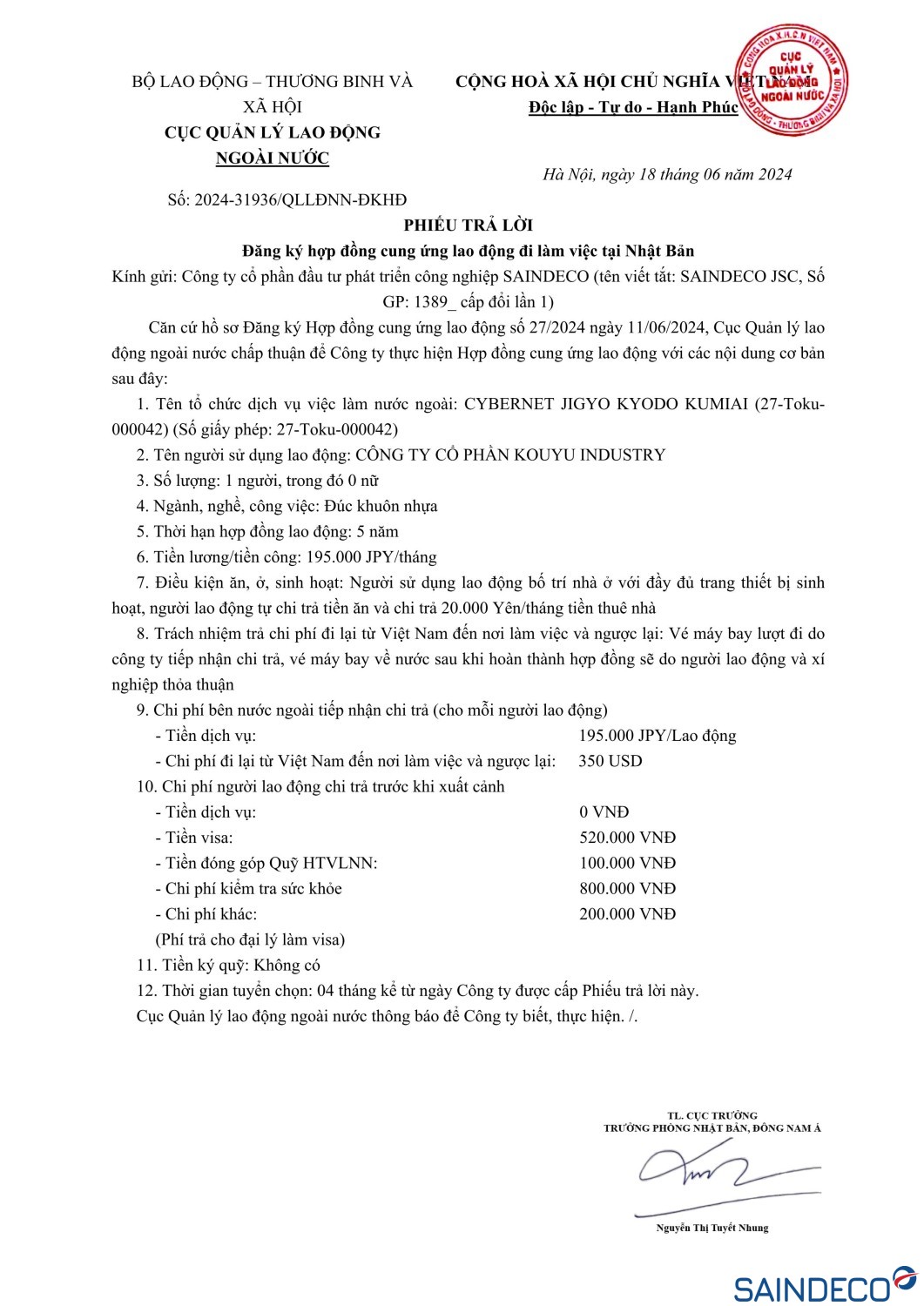 Dự kiến xuất cảnh: 10/2024