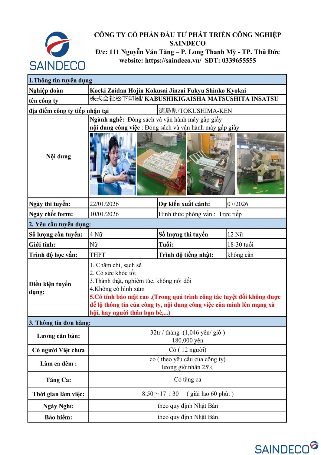 Nội dung công việc cụ thể: Đóng sách và vận hành máy gấp giấy