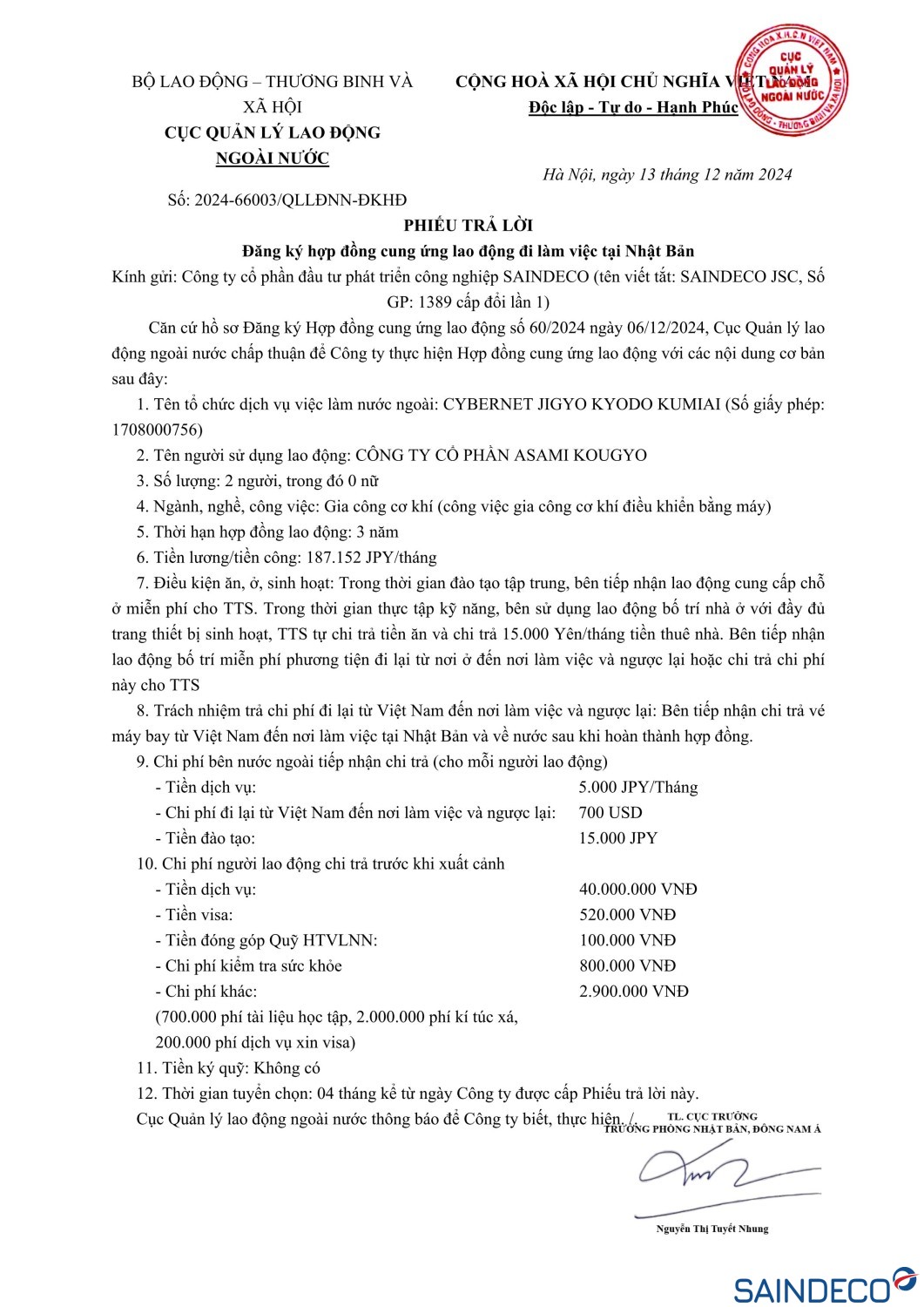 Dự kiến xuất cảnh: 12/2024
