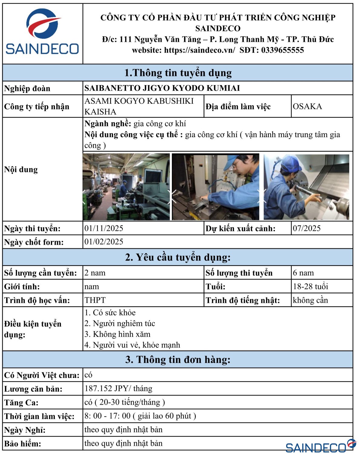 Nội dung công việc cụ thể : gia công cơ khí ( vận hành máy trung tâm gia công )