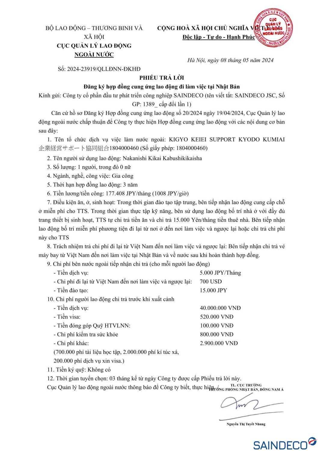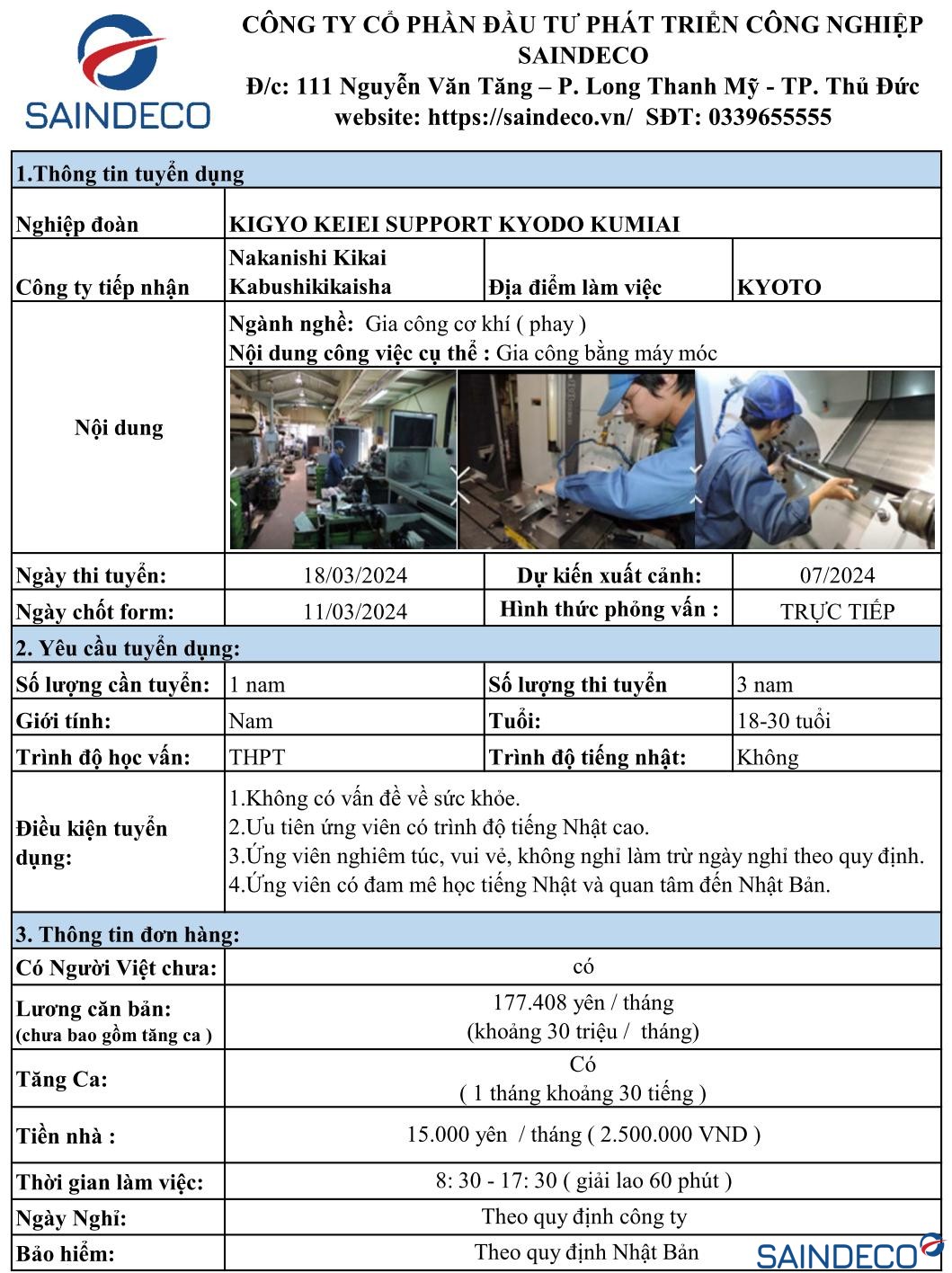 Ngày thi tuyển: 18/03/2024 Dự kiến xuất cảnh: 07/2024