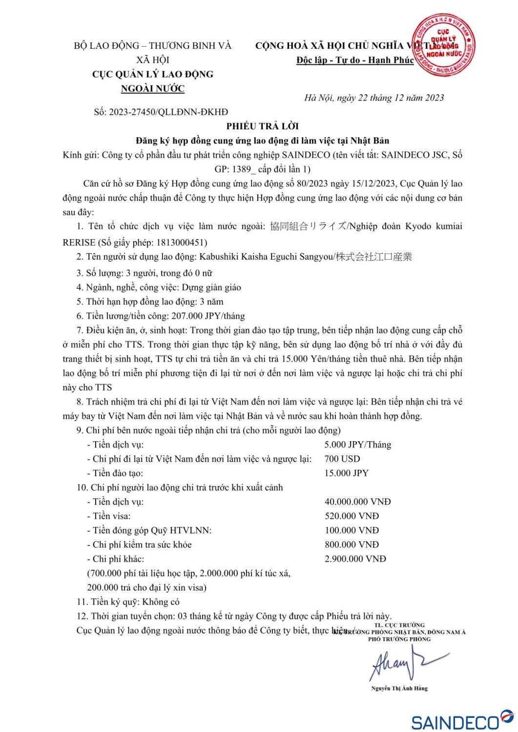 Tuyển dụng việc làm Nhật Bản SAINDECO
