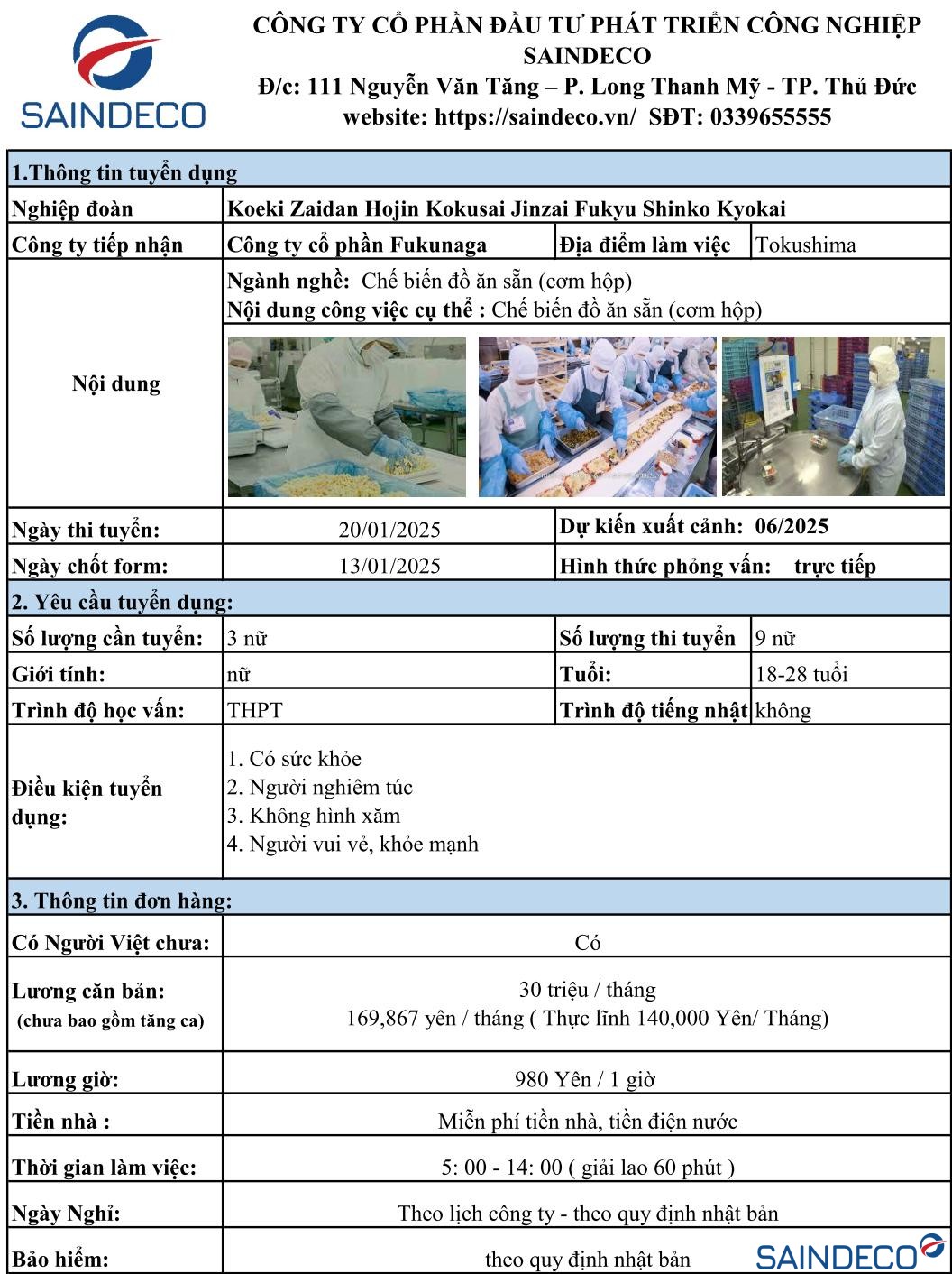Ngày thi tuyển: 20/01/2025 Dự kiến xuất cảnh: 06/2025